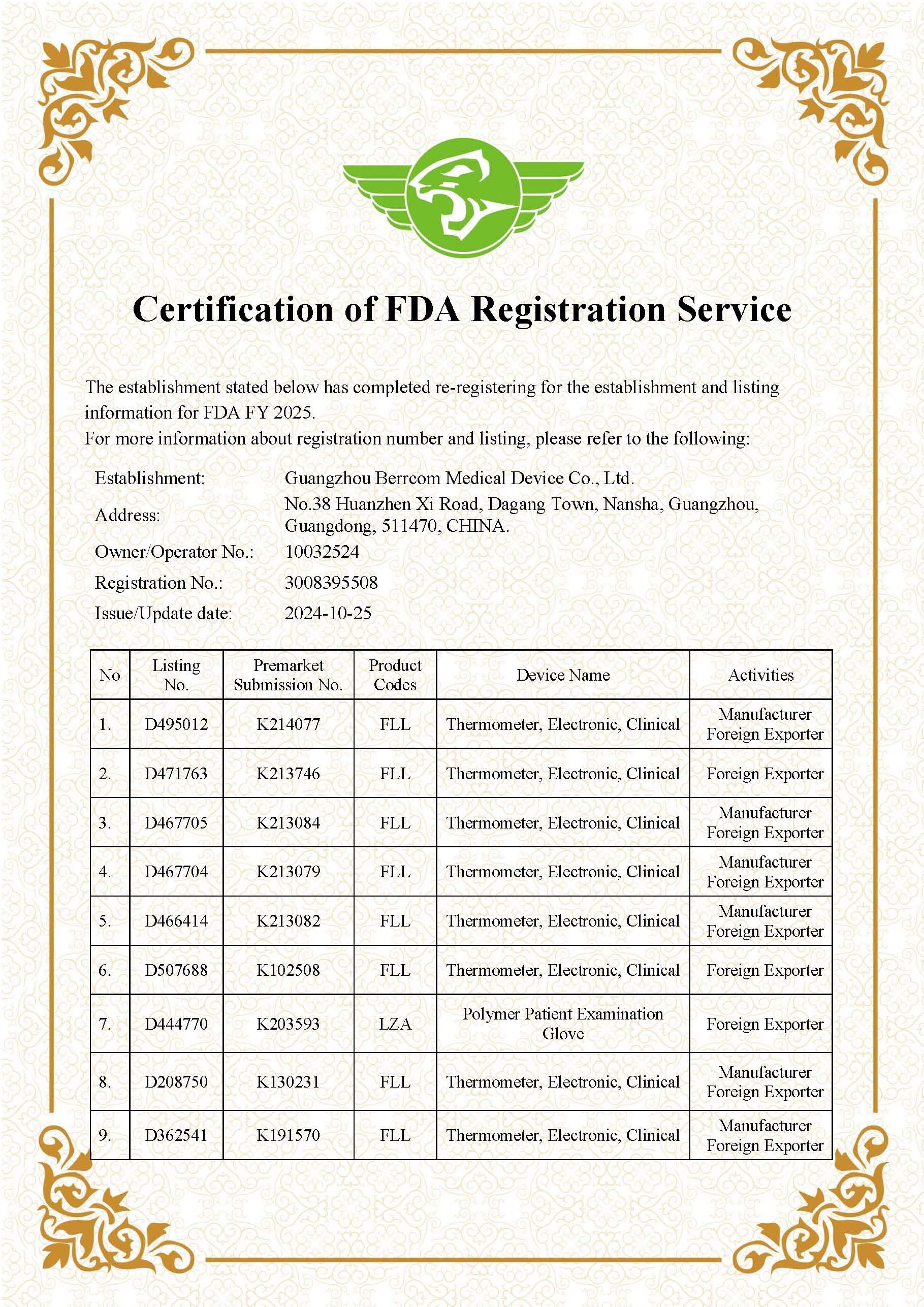 24年來(lái),集團(tuán)始終產(chǎn)品質(zhì)量作為企業(yè)第一生命力,把技術(shù)創(chuàng)新作為第一生產(chǎn)力,采用國(guó)際先進(jìn)水平的智能化生產(chǎn)系統(tǒng),匯聚眾多優(yōu)秀的現(xiàn)代化生產(chǎn)高技術(shù)人才,按照國(guó)際化標(biāo)準(zhǔn)建立質(zhì)量管理體系。集團(tuán)通過ISO 13485認(rèn)證,產(chǎn)品符合國(guó)內(nèi)醫(yī)療標(biāo)準(zhǔn)和國(guó)際質(zhì)量認(rèn)證醫(yī)療CEFDA標(biāo)準(zhǔn)以及歐盟環(huán)保ROHS等標(biāo)準(zhǔn),榮獲多項(xiàng)技術(shù)專利和醫(yī)療行業(yè)榮,被廣東省科學(xué)技術(shù)廳核批為 “廣東省醫(yī)用紅外體溫測(cè)量工程技術(shù)研究中心”。