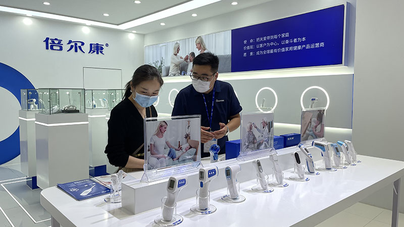 展會期間,不少客商在倍爾康展位駐足停留,與工作人員詳細了解體溫計以及血壓計等品牌新品、感受家庭醫(yī)療器械帶來的新體驗。