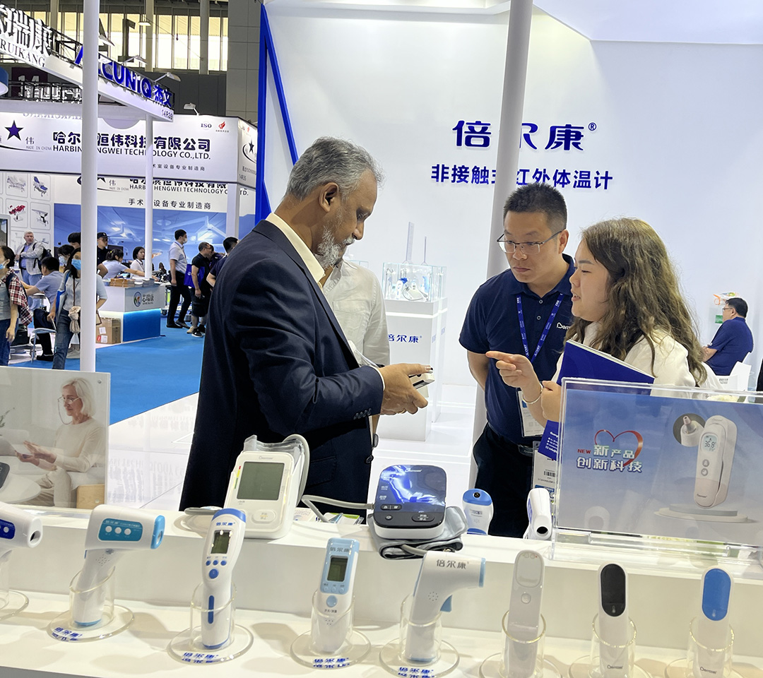與此同時,倍爾康常青產品,展出的DT醫(yī)用體溫計、JXB非接觸式紅外體溫計、ET紅外耳溫計等系列產品,囊括了家庭測溫和公共測溫兩大需求,引起了客商的熱烈關注。