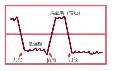 女性月經(jīng)周期以月經(jīng)第一天為周期的開始,周期的長短因人而異,約為21-35天不等,平均約為28天,其中又以排卵日為分隔,分為排卵前的卵泡期,與排卵后的黃體期。卵泡期長短不一定,但黃體期固定約為14天上下兩天。排卵后次日,因卵巢形成黃體,分泌孕激素會使體溫上升攝氏0.6度左右,而使體溫呈現(xiàn)高低兩相變化。高溫期約持續(xù)12-16天(平均14天)。