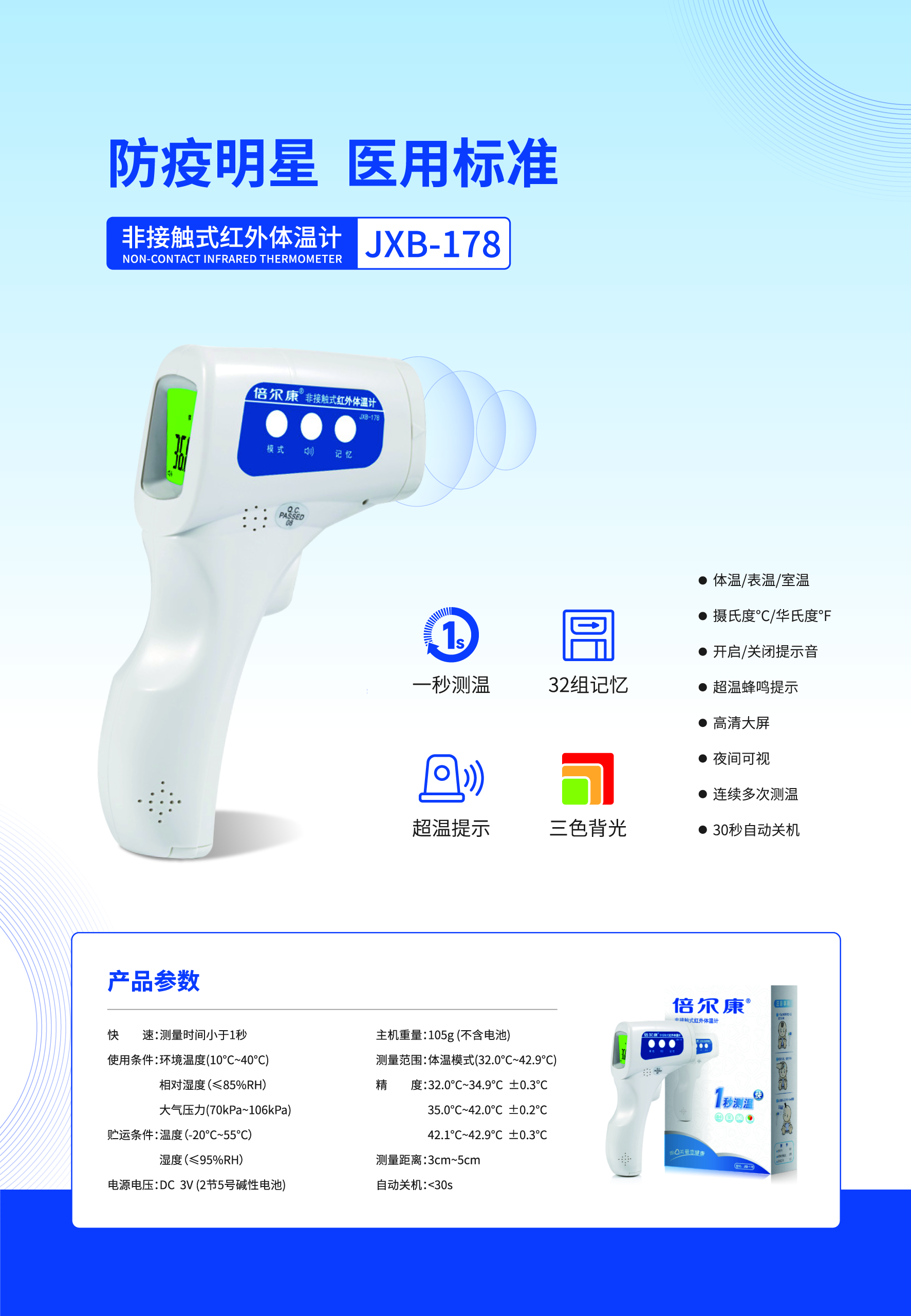 非接觸式紅外體溫計 JXB-178