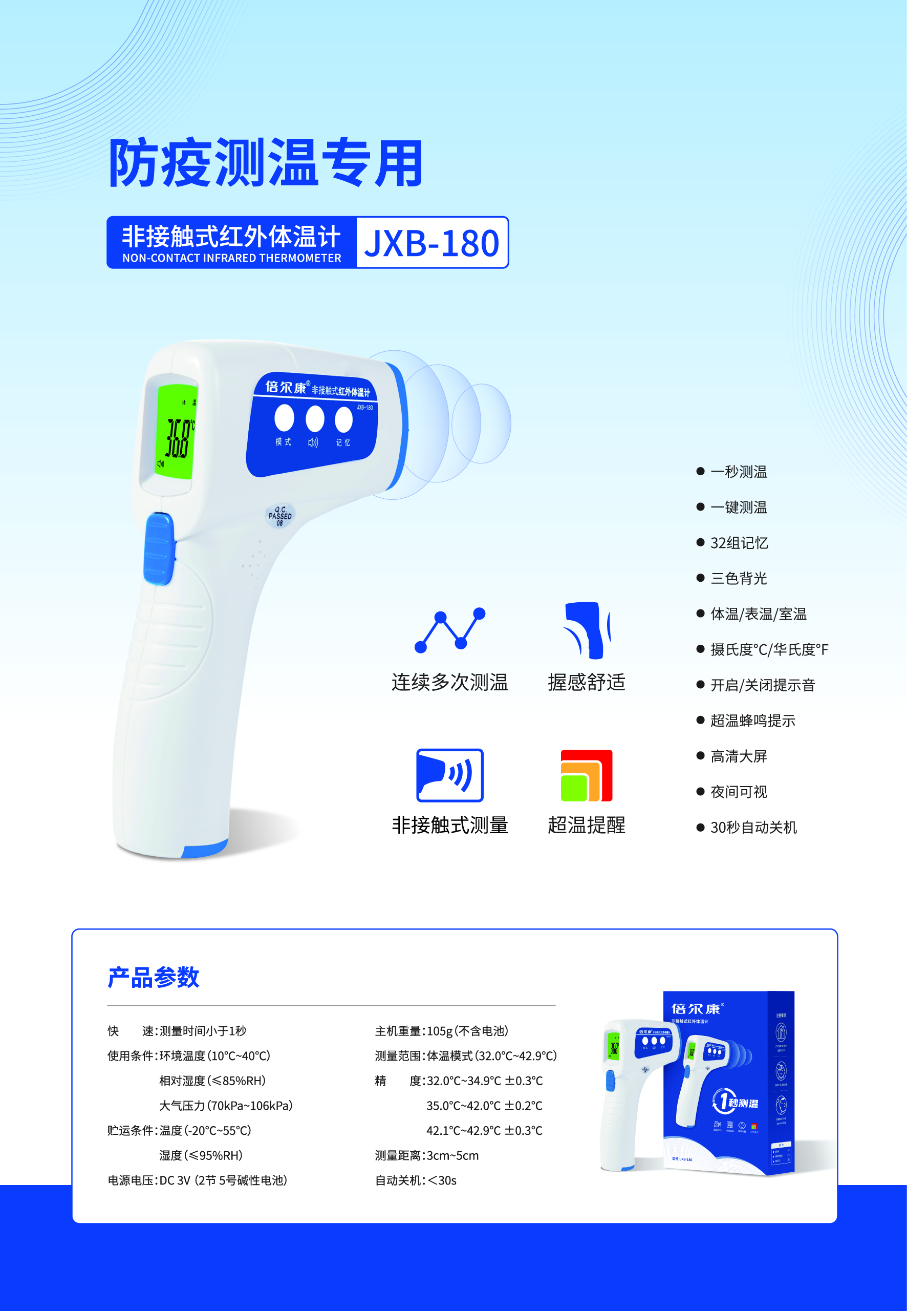 非接觸式紅外體溫計(jì) JXB-180
