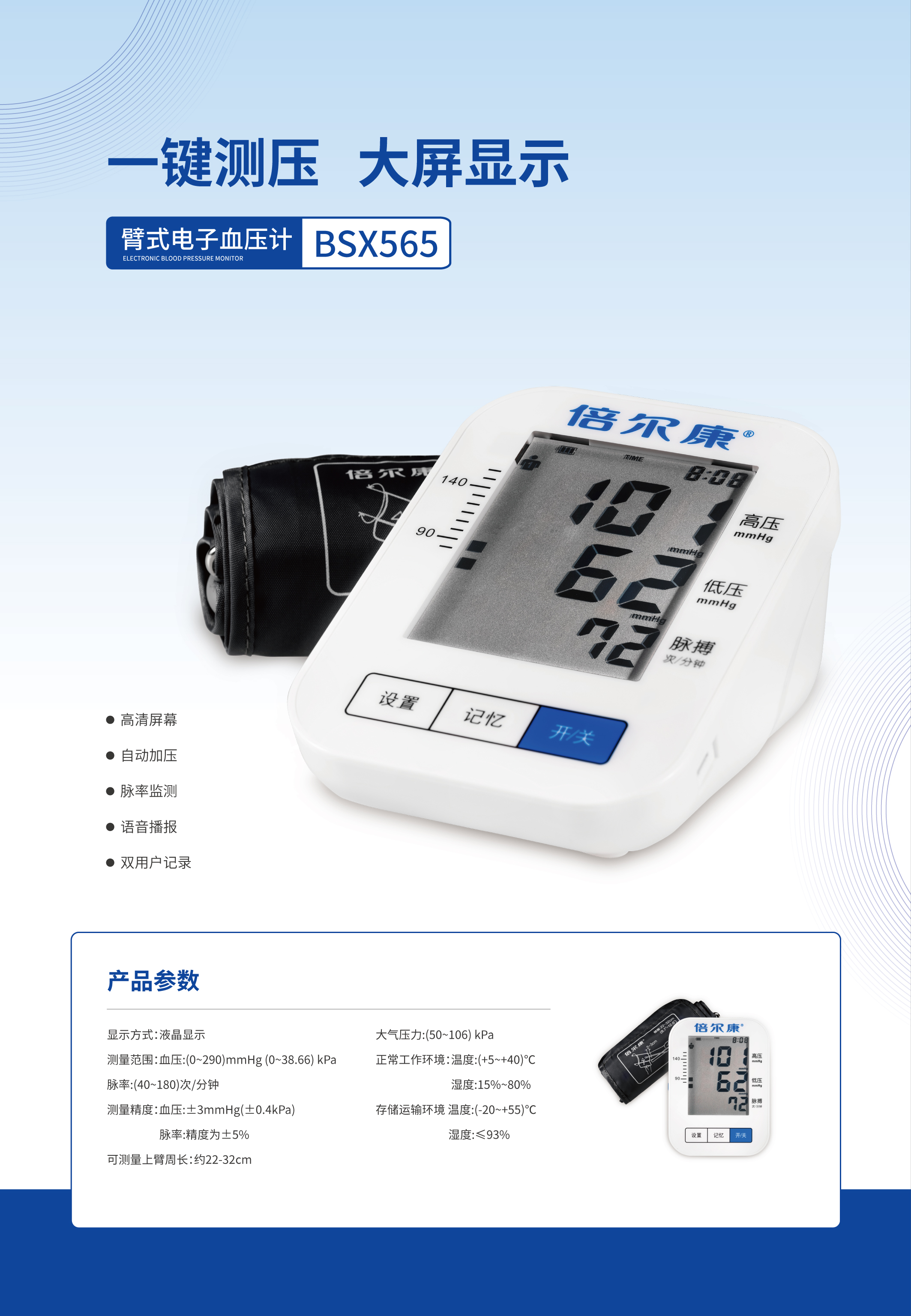 測量范圍:血壓0-290mmHg;脈搏40-180次/分